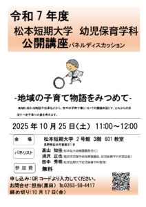 松本看護大学・松本短期大学では、地域の皆様にご参加いただける公開講座を開講いたします。今回は松本短期大学幼児保育学科の公開講座を下記のとおり行います。