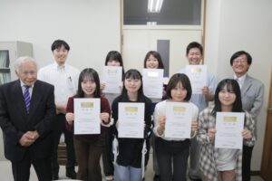 今回は幼児保育学科の7名が合格し、松本短期大学の木内学長から一人ひとりにお祝いの言葉とともに認定証が手渡されました。