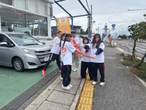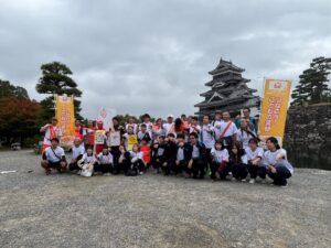 朝、7時50分に松本城に集合し、松本城公園からすが野法祥苑までたすきをつなぎました。