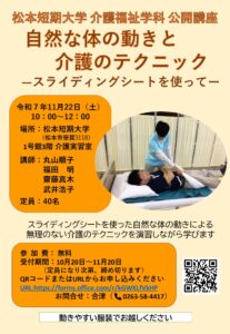 松本看護大学・松本短期大学では、地域の皆様にご参加いただける公開講座を開講いたします。今回は松本短期大学介護福祉学科の公開講座を下記のとおり行います。
