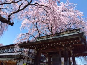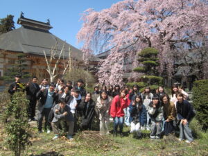 新入生はオリエンテーションのクラスワークの時間に、短大の近くの長照寺に出かけ、大きなしだれ桜を見せていただきました。