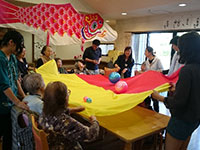 短大で唯一の3学科合同の選択授業であり、グループごとに近くのグループホームに訪問したり、地域の夏祭りに参加したりしています。